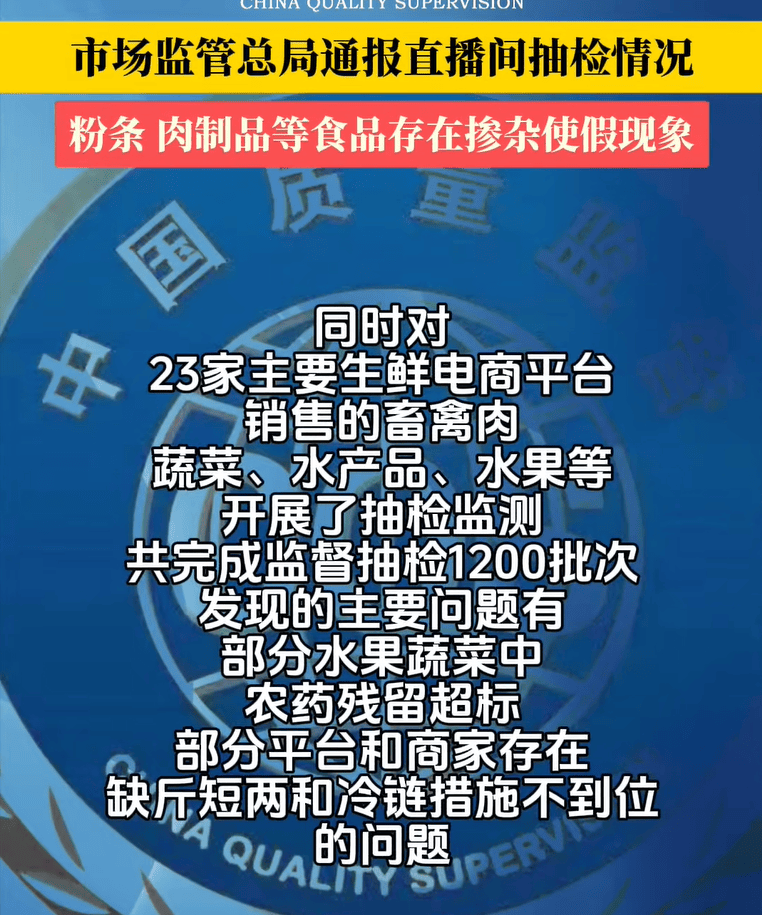 然而,发觉了一些不及格商品。例如正在1042个曲播间的监测中,1492批次的食物中,粉丝、肉成品等存正在掺假的现象。此外,对于生鲜电商平台的禽畜肉、蔬菜、生果、水产物也进行了1200批次的监测,发觉部门生果蔬菜农药残留超标,还有的存正在分量不脚或冷链不达标的问题。