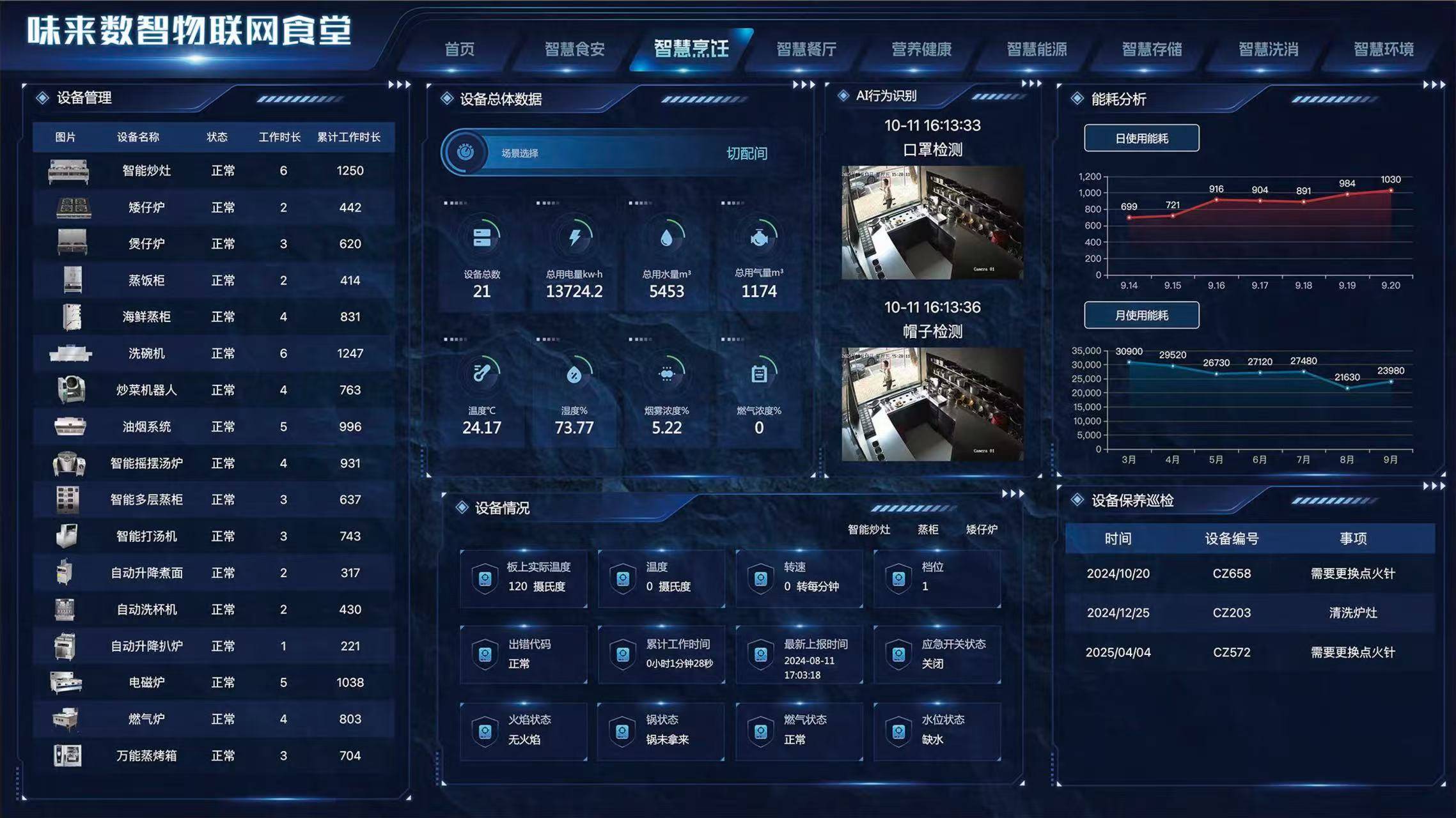 味纪的数智餐饮融合平台将连通餐饮系统的各大功能模块,鞭策餐饮行业全面实现收集化,从动化,智能化、尺度化,数据化。味来数智食堂全面进行出产、人员和食物的,大幅削减出产变乱和食物变乱,打制平安食堂;多角度进行节能减排管控,大幅削减能源耗损取排放,削减粮食华侈,打制绿色食堂;食材从采购、检测、存储、加工、烹调到售卖,全程溯源、低油低盐,打制健康食堂;全场景化的物联网、互联网和通信网互通,将多个数据孤岛进行联通,打制数智食堂;各品类从动化设备和智能化设备,降本增效,保障出品,打制聪慧食堂。