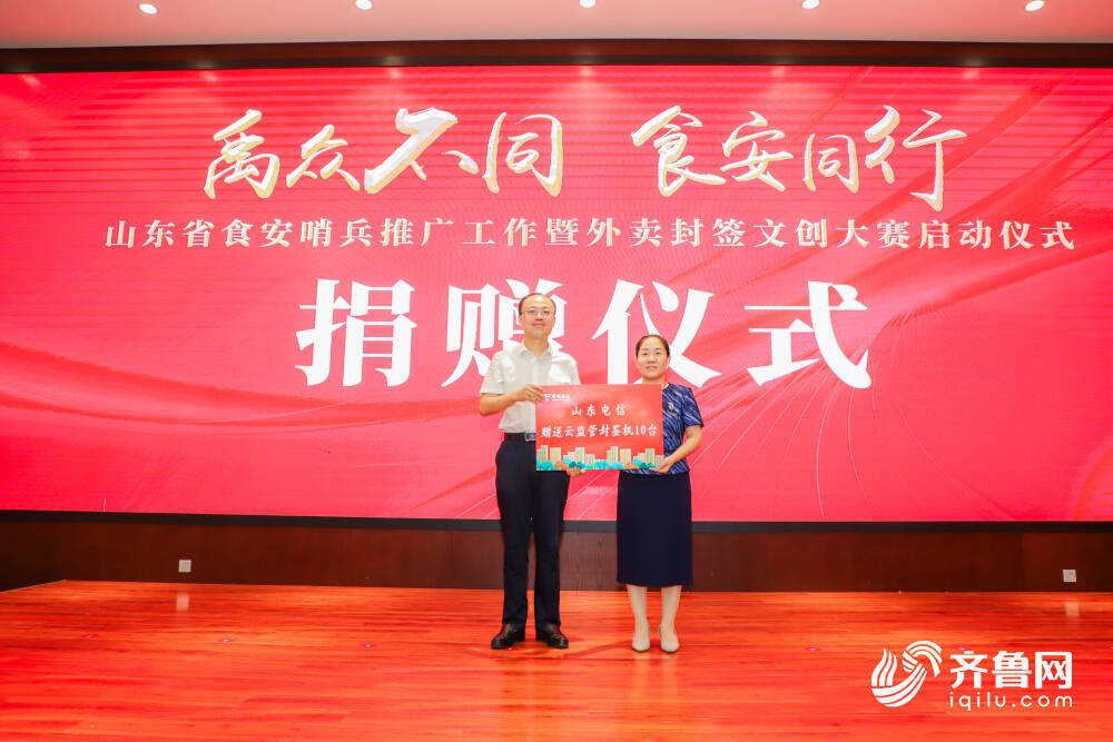 勾当现场,取会带领为外卖平台、“食安尖兵”授旗,并配合启动“食安尖兵”推广工做暨外卖封签文创大赛。中国电信分公司向禹城市市场监管局赠送了10台外卖封签机械。美团、饿了么外卖平台向禹城市优良餐饮企业代表赠送一批外卖封签。