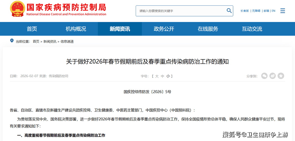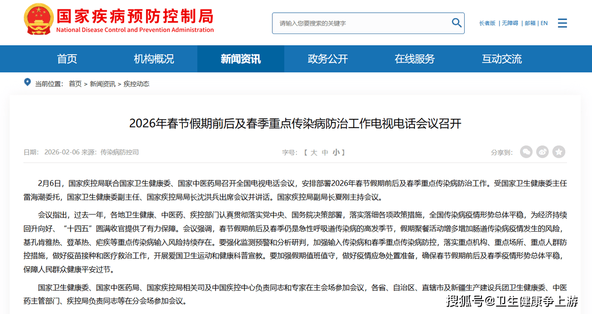 紧接着正在2月7日,三部分结合发布了《关于做好2026年春节假期前后及春季沉点流行症防治工做的通知》。《通知》要求各地疾控、卫生健康、西医药部分要高度注沉,强化风险认识和底线思维。针对春节特点,《通知》出格指出,要指点交通运输场坐、文化和旅逛场合做好客流疏导、密闭场合洁净消毒和通风换气;指点餐饮单元加强食物卫生和平安办理;并指点托长机构、学校正在开学前做好讲授和糊口、饮用水的卫生工做。国度卫生健康委副从任、国度疾控局局长沈洪兵正在会议上强调,要压实“四方义务”,确保防控工做不放松、不竭线,保障人平易近群众健康安然过节。